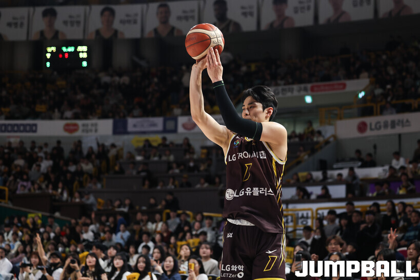 유기상이 출전한 120경기 중 3점슛 3개 이상 성공한 41경기에서 LG는 승률 85.4%(35승 6패)를 기록 중이다.