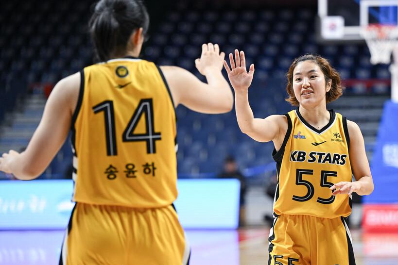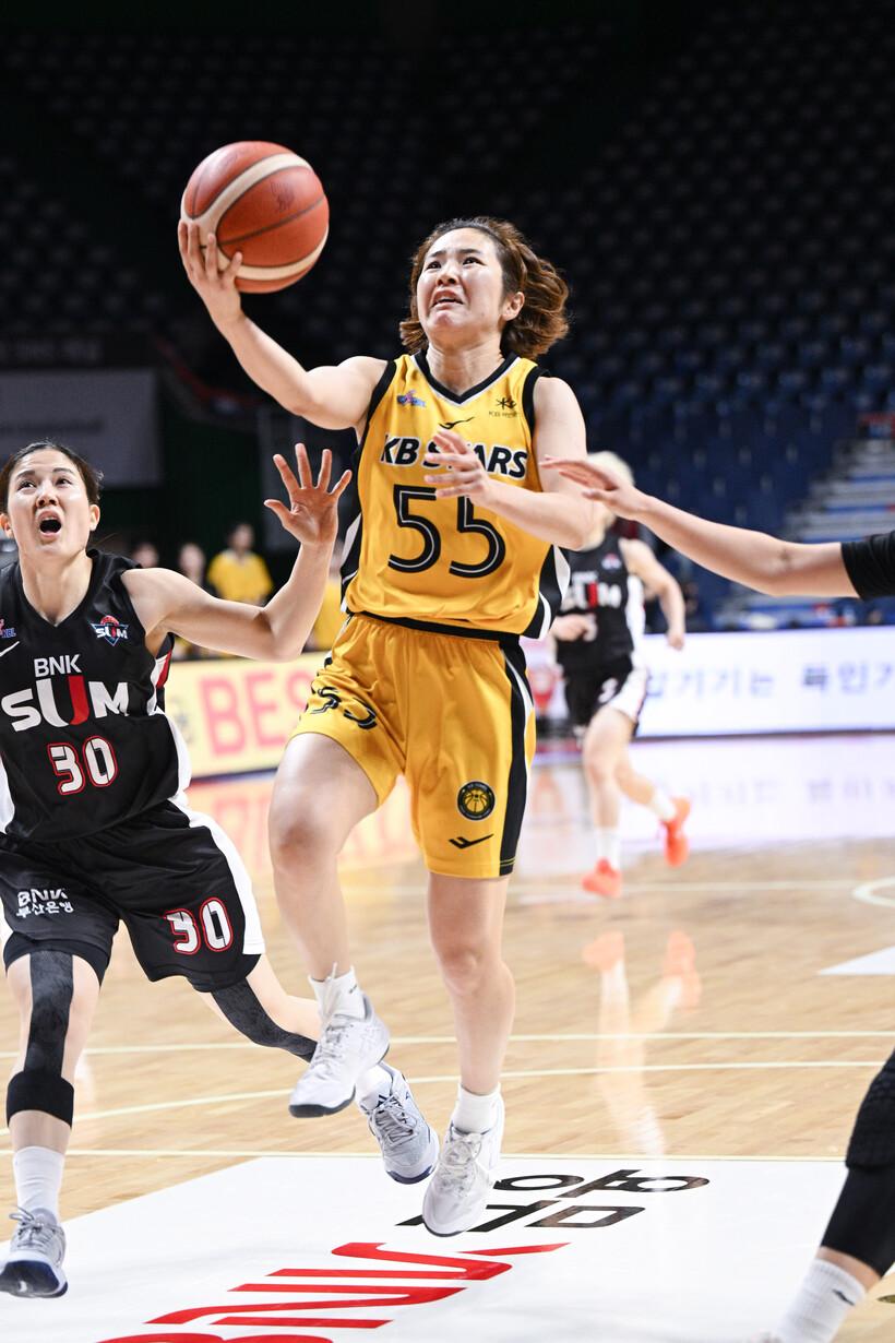 청주 KB는 22일 부산사직체육관에서 열린 원정 경기에서 박지수와 강이슬, 이채은, 허예은의 고른 활약으로 부산 BNK를 70-57로 물리쳤다.