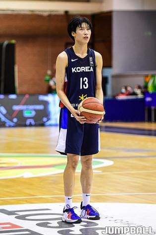 14일 헝가리 데브레첸 올라가보르 스포츠홀에서 열린 '2021 FIBA U19 여자농구월드컵' 프랑스와 아르헨티나의 경기, 변소정이 3점슛을 시도하고 있다.