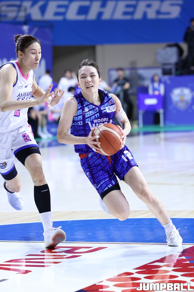 뛰는 게 기적인 발목 상태. 그렇지만 꾹 참고 코트에 나섰고, 17점이나 쏟아냈다. 4라운드 우리은행의 득점 부담을 줄여주던 ‘복덩이’다웠다.