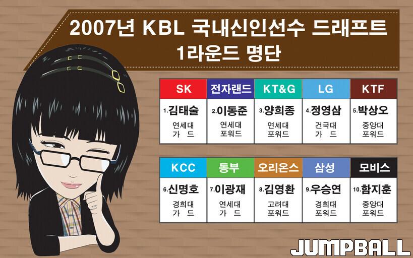 2007 신인드래프트하면 따라붙는 말들이 있다. '역대 최고', '황금 세대' 등이 바로 그것으로 엄청난 극찬에서도 알 수 있듯이 이제껏 치러졌던 어떤 드래프트보다도 높은 평가를 받고 있다. 특히 1라운드에 지명된 선수를 살펴보면 그야말로 입이 쩍 벌어진다. 통산 184경기를 소화한 9순위 우승연(39‧193cm)이 가장 부진한 성적을 거뒀을 정도로 그야말로 초호화 라인업이다. 우승연같은 경우도 2007년이니까 1라운드 최약체가 된 것이지 어지간한 드래프트같았으면 평균 수준은 된다고 할 수 있다.