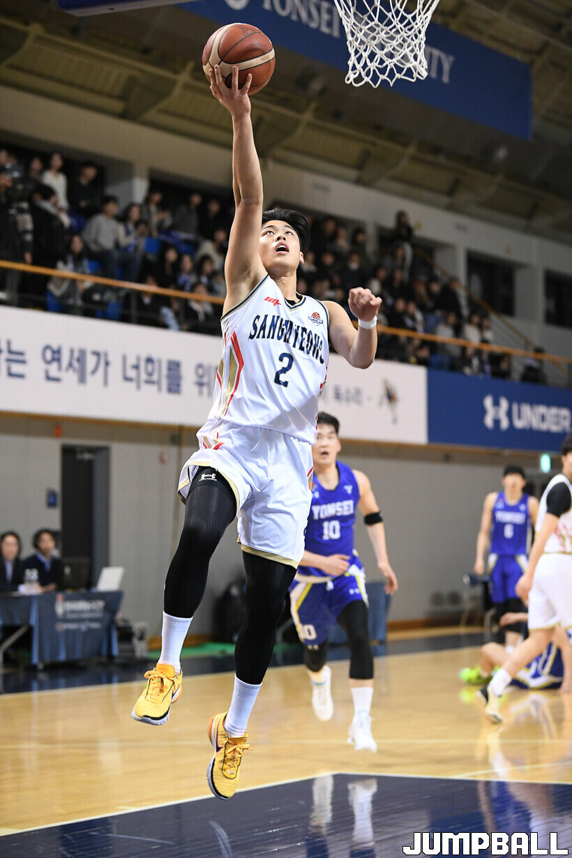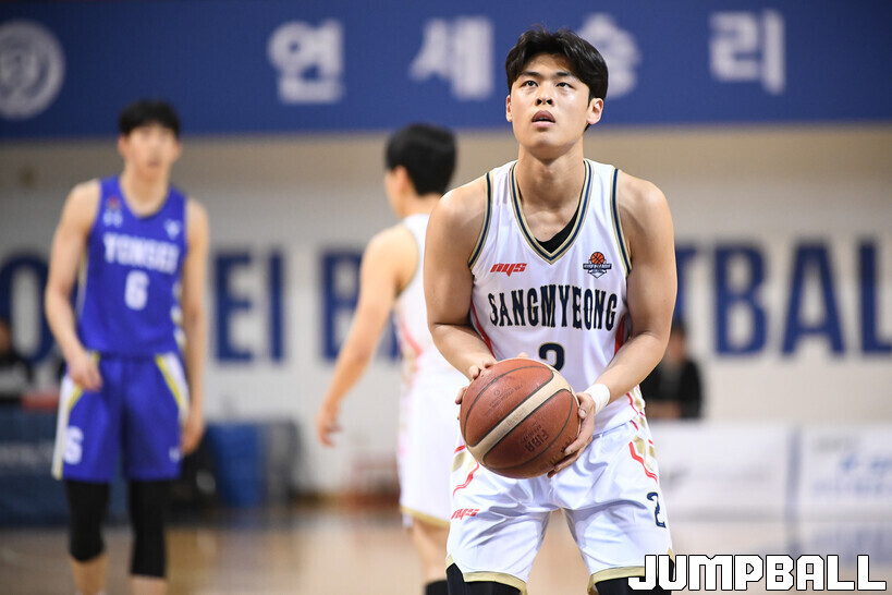 상명대학교 천안캠퍼스 체육관에서 만난 송정우는 “(지난해 대학농구리그가 끝난 뒤) 아예 쉬지는 않았다”며 “본격적으로 훈련을 시작한 건 1~2주 전부터다. 줄넘기도 많이 하고, 셔틀런 등 많이 뛰는 훈련을 하면서 몸을 만들고 있다”고 동계훈련을 어떻게 소화하고 있는지 들려줬다.