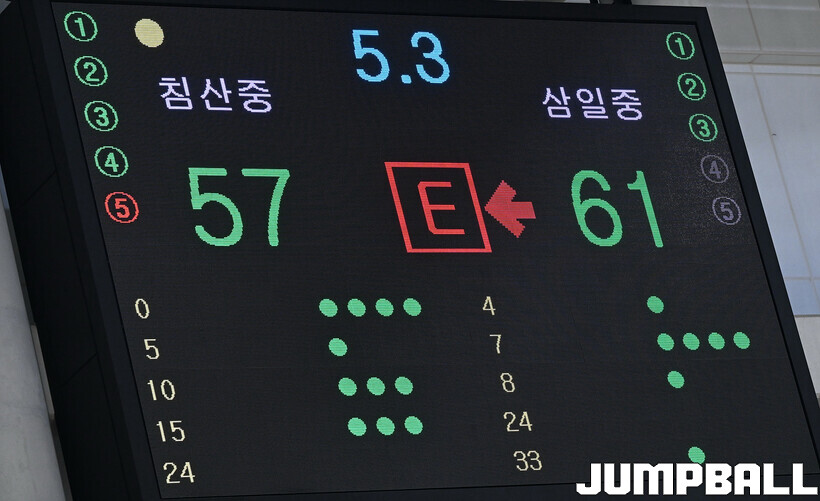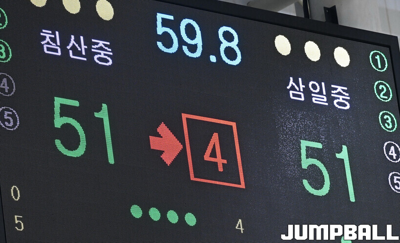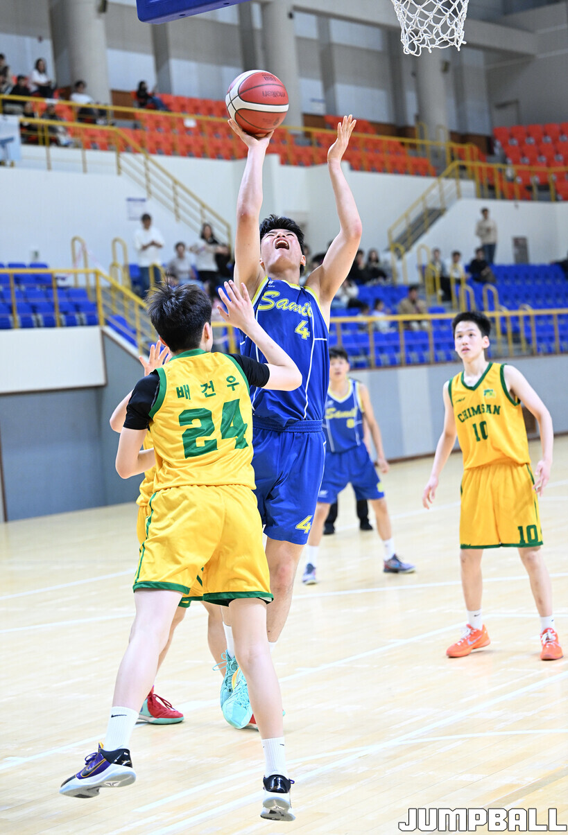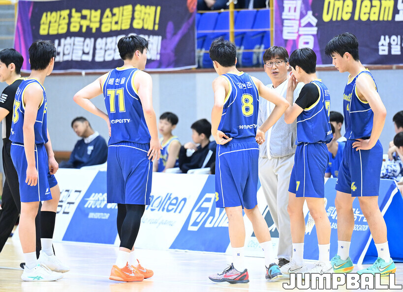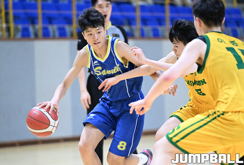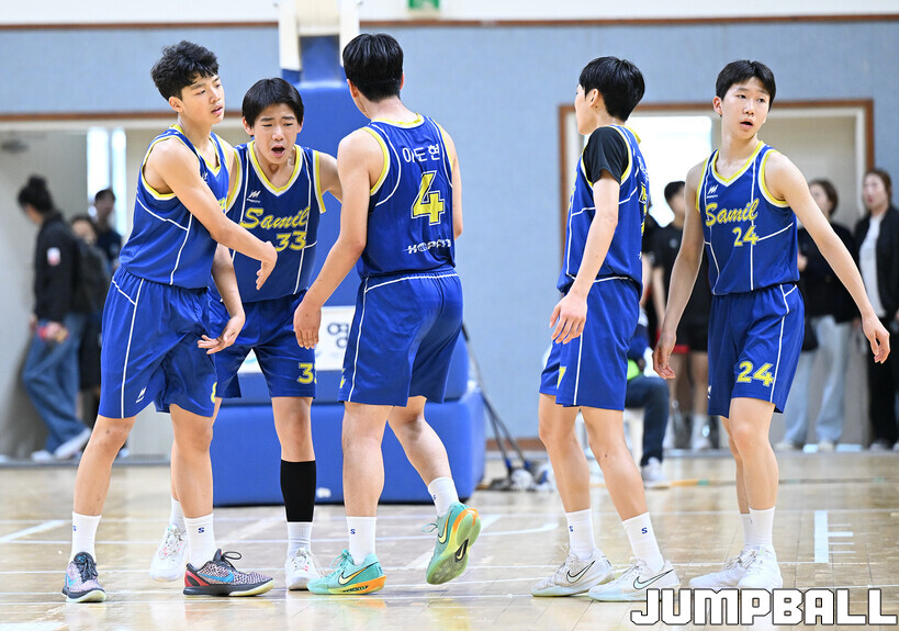 [점프볼=영광/문복주 기자] 11일 전라남도 영광군 영광 스포티움 국민체육센터에서 열린 제51회 협회장기 전국남녀중고농구대회 남중부 준결승전 침산중과 삼일중의 경기에서 삼일중이 연장 접전끝에 61-57로 승리를 했다. 삼일중의 김현우(21득점), 이도현(16득점, 12리바운드), 배한율(11득점, 6리바운드), 정은후(10득점, 10리바운드, 7어시스트), 김현준(3득점, 10리바운드, 6어시스트)로 결승전 진출을 이끌었다.