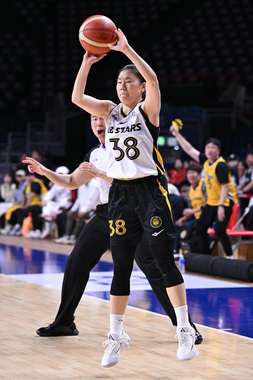 김완수 KB 감독은 “우리은행에서 주전급으로 뛰었는데 우리 팀에서 주전으로 뛰며 책임감을 많이 느낀다. 슛 자신감을 가지고 있고, 벤치에서도 강이슬과 둘이서 던지지 않으면 우리 팀은 살 수 없다고 한다”며 “다른 선수들도 마찬가지인데 (나윤정이 BNK와 경기에서) 슛 자신감을 얻었다”고 나윤정의 플레이를 되짚었다.