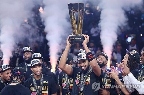 뉴욕 닉스는 17일(한국시간) 미국 네바다주 라스베이거스 T-모바일 아레나에서 열린 2025 에미레이트 NBA컵 결승전 샌안토니오 스퍼스와의 경기에서 124-113으로 승리했다.