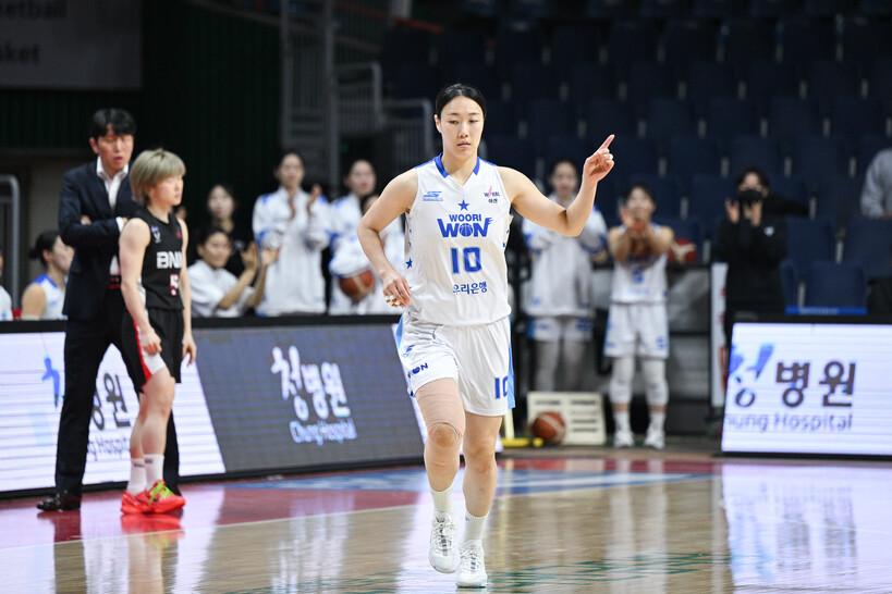 우리은행은 BNK와 나란히 15승 7패를 기록해 공동 1위에 자리잡았다.