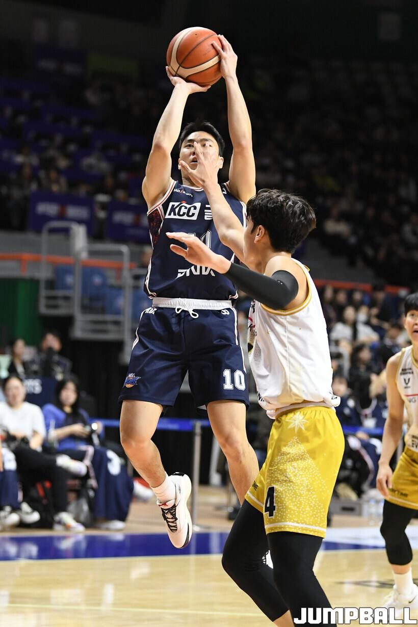 부산 KCC는 14일 부산사직체육관에서 열린 안양 정관장과 홈 경기에서 화끈한 공격력을 자랑하며 103-76으로 이겼다.