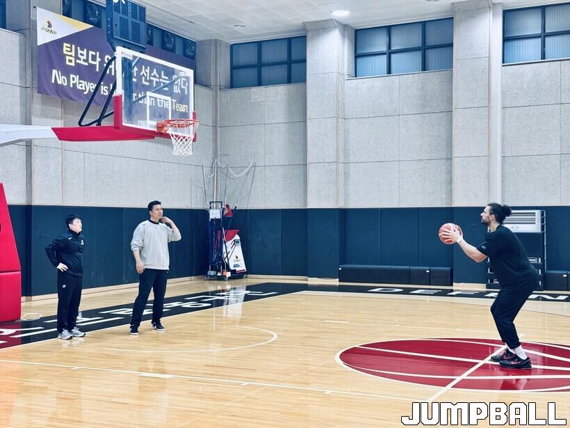 마레이는 모든 훈련을 마친 뒤 자유투 라인에 섰다. 박유진 코치가 이를 지켜봤다.