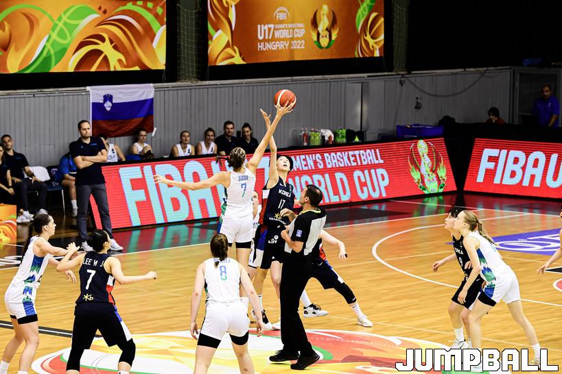 15일 헝가리 데브레첸 올라 가보 스포츠홀에서 열린 2022 FIBA U17 여자농구월드컵 한국과 슬로베니아의 순위 결정전 경기, 점프볼로 경기가 시작되었다.