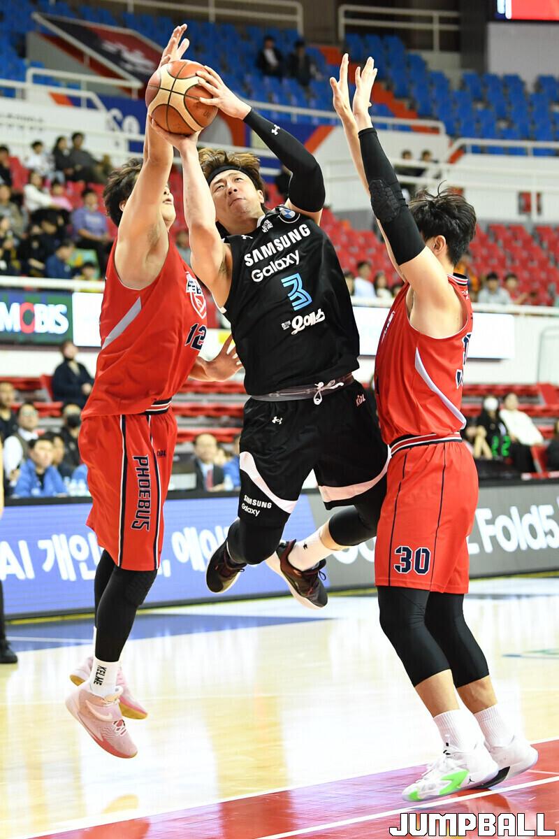 9일 울산 동천체육관에서 열린 2023-2024 정관장 프로농구 울산 현대모비스와 서울 삼성의 경기, 삼성 이정현이 공격을 시도하고 있다. [점프볼=울산/유용우 기자]