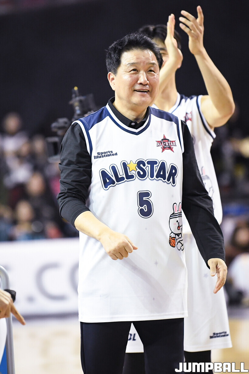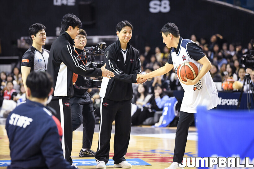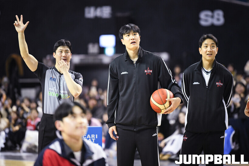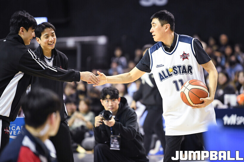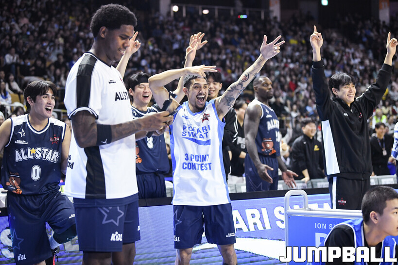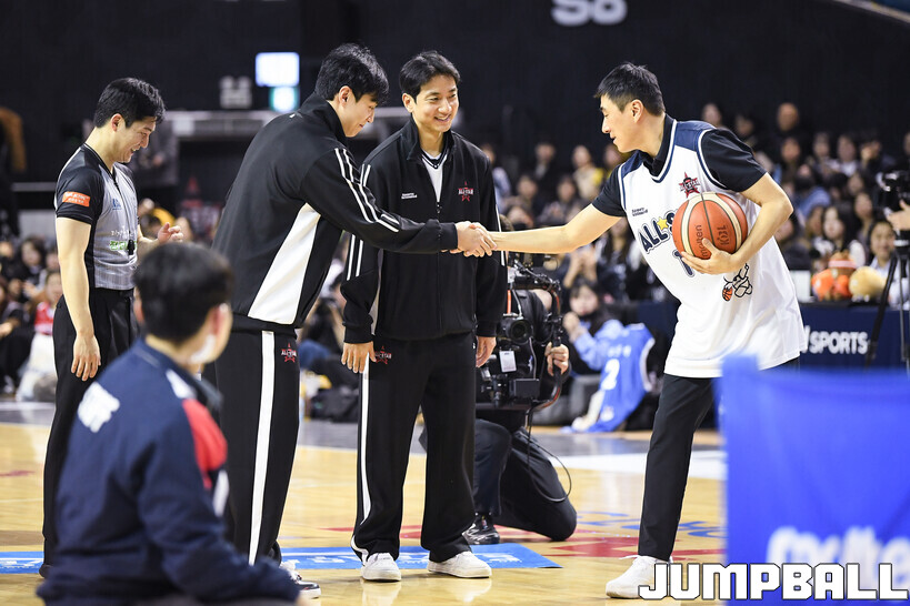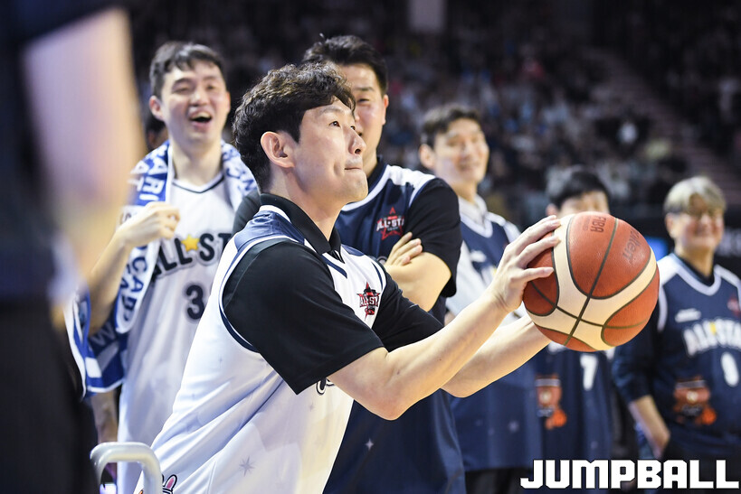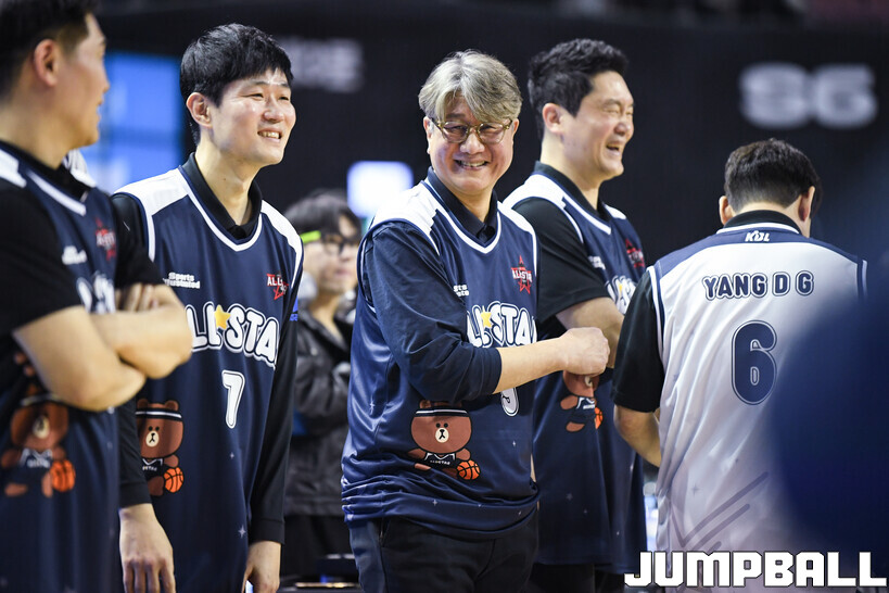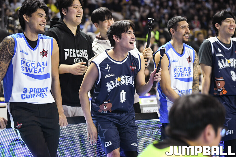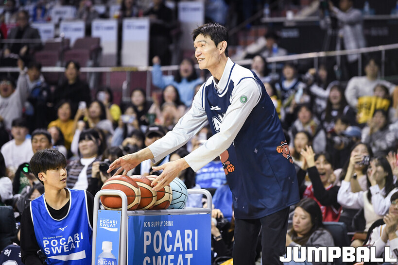 [점프볼=잠실/유용우 기자] 18일 잠실체육관에서 열린 2025-2026 LG전자 프로농구 올스타전 포카리스웨트 3점슛 콘테스트, 본 콘테스트에 앞서 팀 브라운과 팀 코니의 감독, 코치의 이벤트 3점슛 매치가 열렸다. 현대모비스 양동근 감독과 KT 문경은 감독은 5개 중 4개를 성공시키며 녹슬지 않은 실력을 농구팬들에게 선보였다. 팀 브라운은 삼성 김효범 감독의 머니볼 성공으로 15-14로 이벤트 매치에 승리했다.
