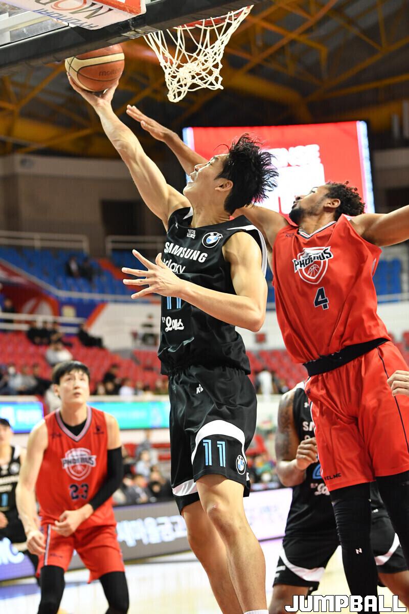 9일 울산 동천체육관에서 열린 2023-2024 정관장 프로농구 울산 현대모비스와 서울 삼성의 경기, 삼성 이원석이 레이업을 올리고 있다. [점프볼=울산/유용우 기자]