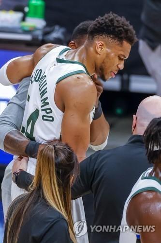 아데토쿤보는 지난 30일(한국시간) 애틀랜타 호크스와의 2021 NBA 플레이오프 동부 커퍼런스 파이널 4차전에서 무릎 부상을 입었다. 3쿼터 7분여를 남기고 골밑에서 클린트 카펠라의 덩크슛을 저지하기 위해 점프한 그는 착지하는 과정에서 왼쪽 무릎을 다쳤다. 무릎이 크게 꺾여 한 눈에 봐도 심각한 상황임을 직감할 수 있었다.