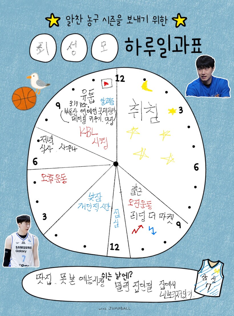DB와 KT에 이어 삼성. 총 3팀을 거쳤기에, 팀마다 다른 식사를 경험한 최성모. 그의 식사 원픽은 어느 팀이었을까? “흠…(10초 고민) 아 섣불리 못 고르겠어요. 세 팀 다 맛있어요. 그런데 각자의 매력은 있어요. DB는 되게 집밥 같은 느낌이었고, KT랑 삼성은 뷔페식이라(웃음). 아 어디로 해야 하지? PASS!”