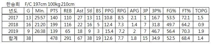 G스카우트는 “한승희는 이것저것 하고 포스트업과 슈팅 능력이 늘었다. 프로에서 살아남으려면 뭔가 하나 특화된 장기가 있어야 한다. 전투력이 최대 장점”이라며 “슛이 쏘면 들어간다는 확신을 줘야 한다. 부상 우려도 있다. 한 시즌도 부상을 안 당하고 넘어간 시즌이 없다. 운 없이 부상을 당했더라고 해도 말이다”라고 한승희의 장점과 단점을 설명했다.