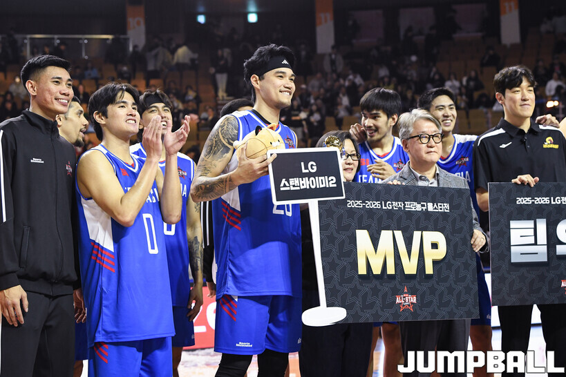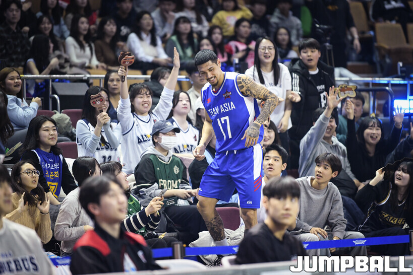 [점프볼=잠실/유용우 기자] 17일 잠실실내체육관에서 2025-2026 LG전자 프로농구 올스타게임 전야제 팀 아시아와 팀 루키의 경기가 열렸다. 팀 아시아는 필리핀 아시아쿼터로 팀을 구성했다. 3라운드 MVP를 수상한 이선 알바노(DB)를 비롯해 케빈 켐바오(소노), 렌즈 아반도(정관장), 저스틴 구탕(삼성), 샘조세프 벨란겔(한국가스공사) 등 소속팀에서 필리핀 선수들이 맹활약 중이다.