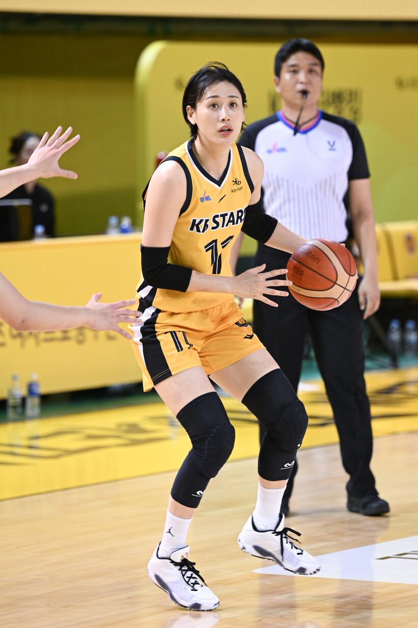청주 KB스타즈가 선전하고 있다. KB스타즈는 하나은행 2024~2025 여자프로농구 정규리그 1라운드를 공동 2위로 마쳤다. 13일에는 지난 시즌까지 라이벌 구도를 이어갔던 아산 우리은행을 58-54로 꺾고 역대 최다인 홈 17연승을 질주했다. 강이슬은 3점슛 3개 포함 11점 11리바운드로 활약하며 팀 승리에 앞장섰다.