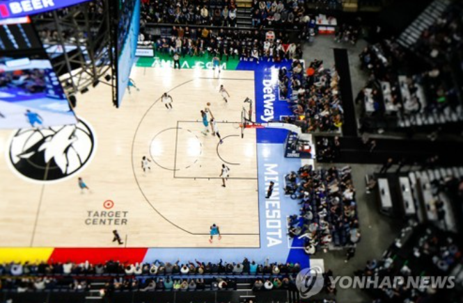 9일(이하 한국시간) 미국 미네소타주 미니애폴리스 타깃 센터에서 열린 미네소타 팀버울브스와 클리블랜드 캐벌리어스의 맞대결 전. 이민세관단속국(ICE) 요원의 총격에 숨진 르네 니콜 굿을 추모하는 묵념의 시간이 있었다.