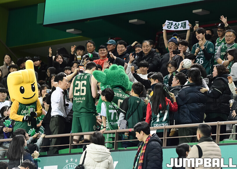 11일 원주DB프로미아레나에서 열린 2025-2026 LG전자 프로농구 DB와 안양 정관장의 맞대결. ‘가자미’ 강상재의 가치는 가감 없이 드러났다.