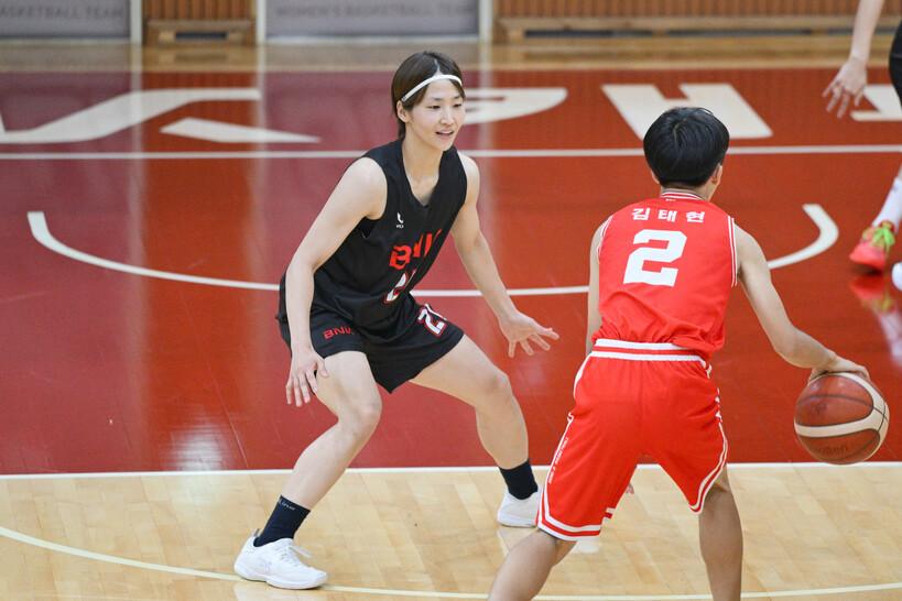 이이지마 사키(173cm, F)는 심수현과 김정은, 이소희, 김소니아, 최민주와 같은 팀을 이뤄 경기를 소화했다. 수비 능력을 인정받는 사키는 공격에서는 소극적이었다.