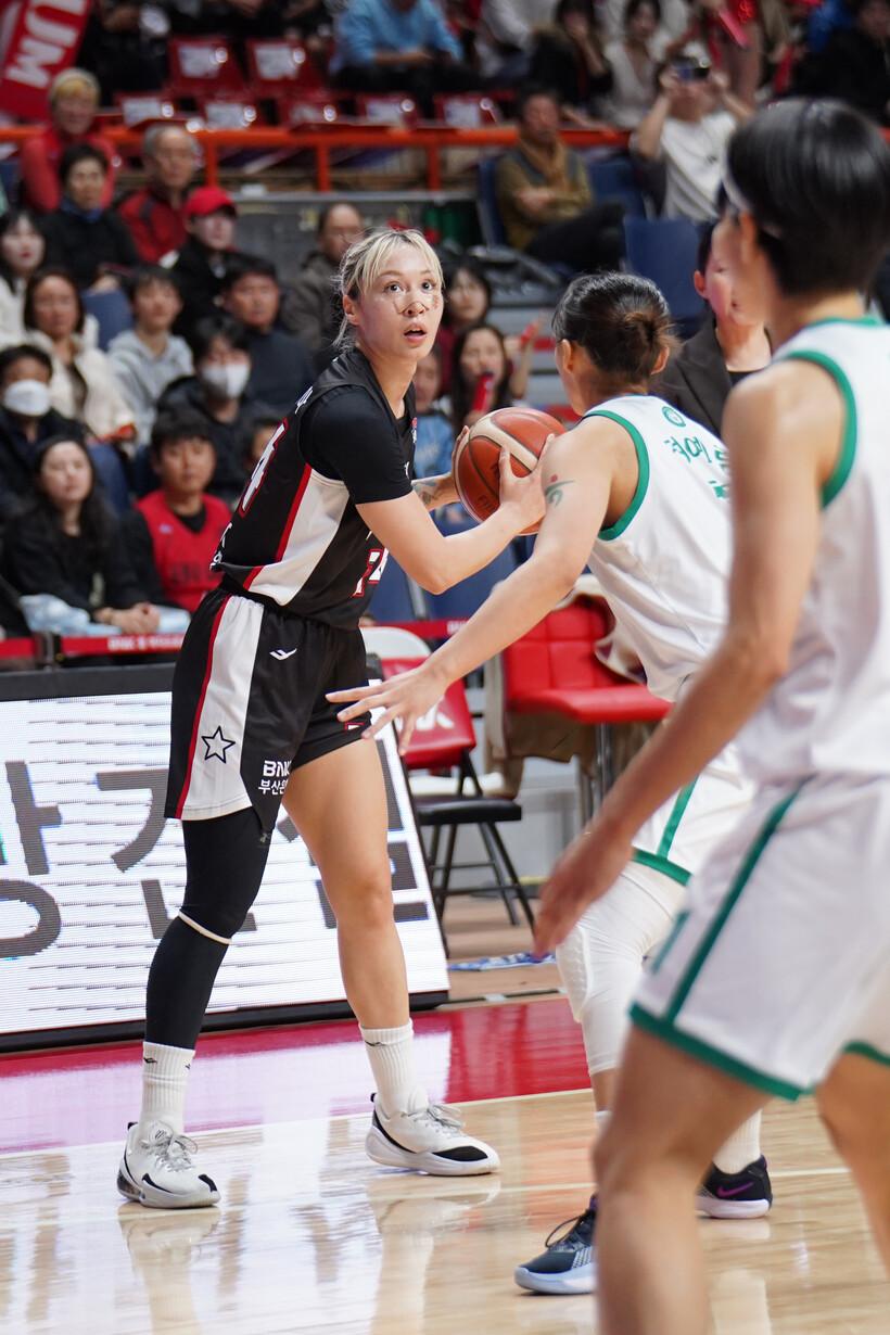지난 1일 하나은행과의 1라운드 맞대결 패배(49-60)을 완전히 설욕한 1승이다. 비록 4쿼터 진안의 연속 10점에 고전, 다 잡은 경기를 내줄 뻔한 위기도 있었으나 BNK는 높은 집중력으로 극복했다.