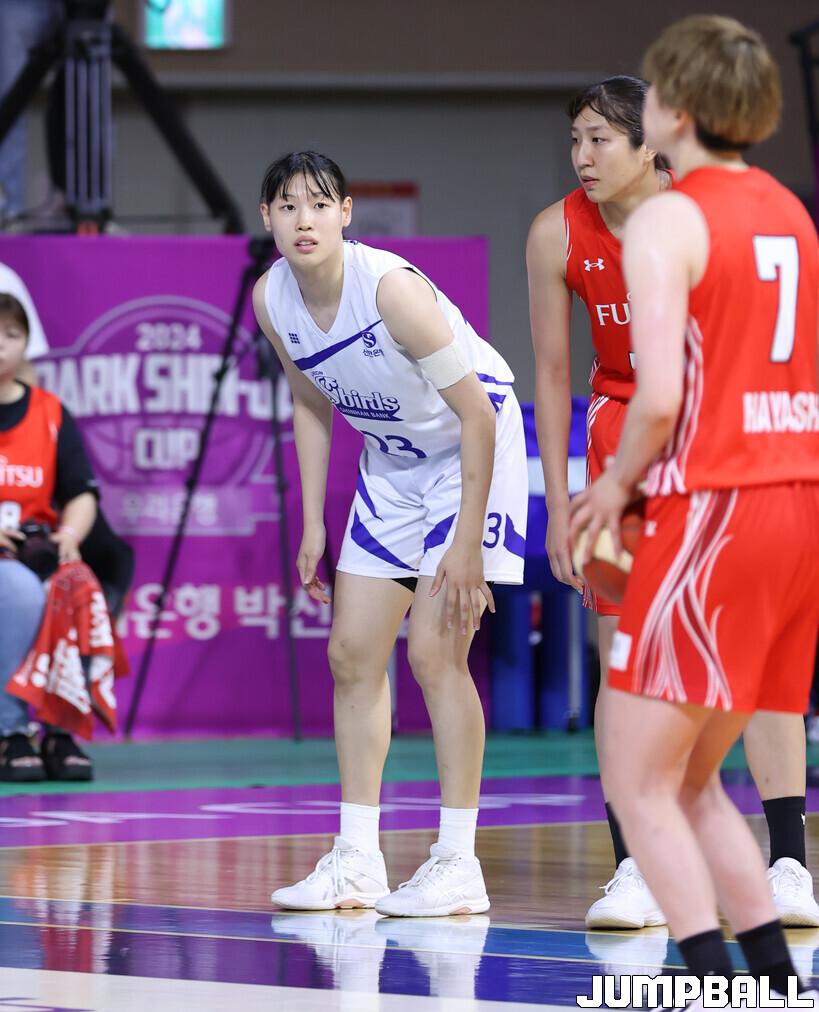 단연 관심을 모은 선수는 1순위로 인천 신한은행에 선발됐던 재일교포 홍유순이다. 홍유순은 1일 후지쯔 레드웨이브와의 경기에 교체 출전, 18분 22초를 소화하며 4점 6리바운드를 기록했다. 3점슛 1개는 림을 외면했지만, 스크린과 박스아웃 등 기본기에 충실하며 데뷔 경기에서 예상보다 많은 출전시간을 소화했다.