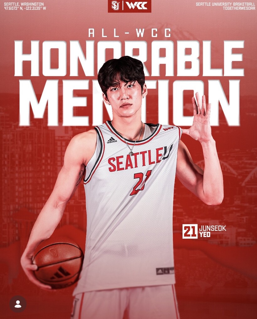 시애틀대 여준석은 3일(이하 한국시간) 발표된 NCAA(미국대학스포츠협회) 디비전1 웨스트코스트컨퍼런스(WCC) 2025-2026시즌 남자농구 올컨퍼런스 팀 수상자 명단에서 아너러블 멘션(Honorable Mention)에 선정됐다.