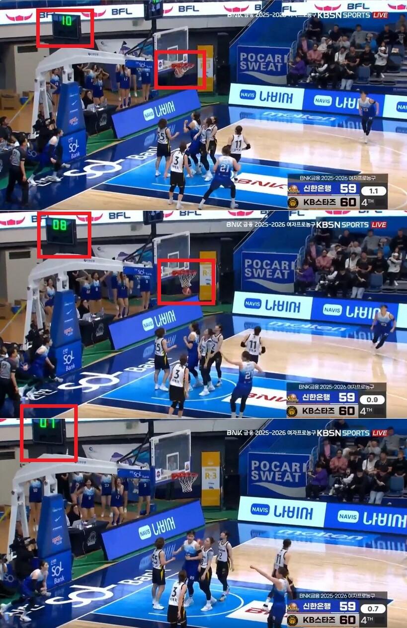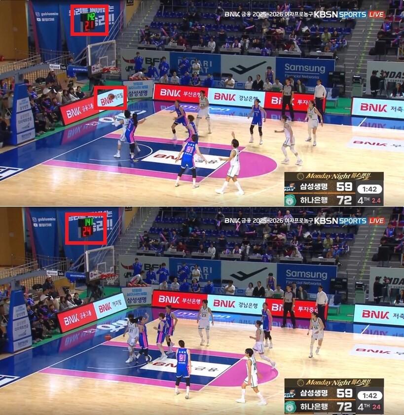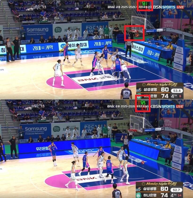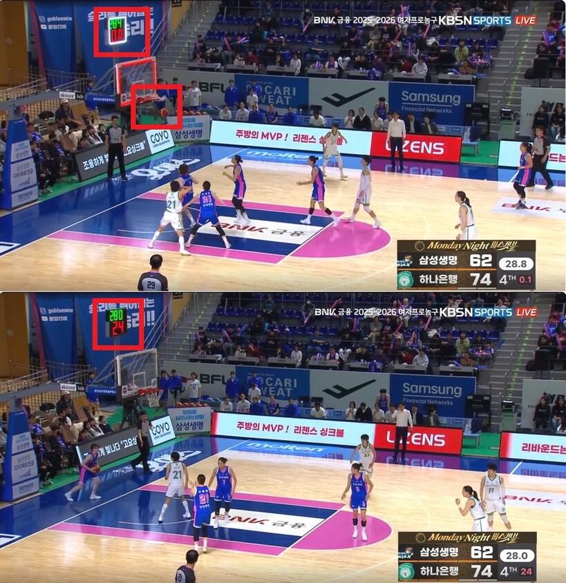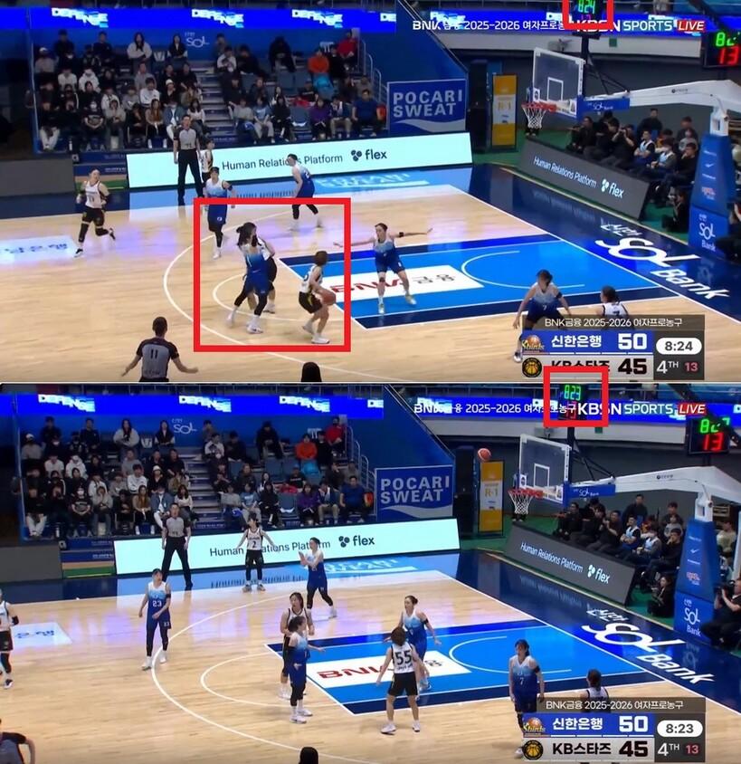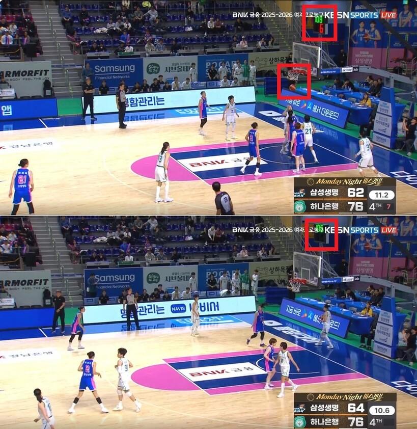 다만, 강이슬이 패스를 받았을 때보다 조금 늦게 경기 시간이 흐르기 시작했다는 게 확인된다.