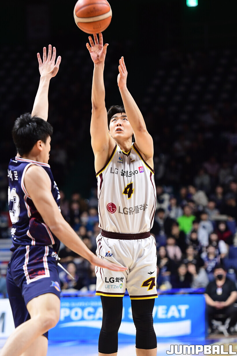 LG가 2024년 2월 8일 KCC와 원정 경기에서 69-90으로 졌다. 당시 3점슛은 5-9로 뒤졌고, 성공률도 15.2%(5/33)와 39.1%(9/23)로 열세였다.