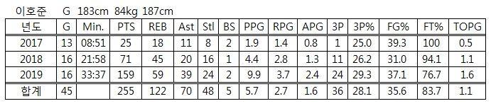 상명대는 최근 가용인원이 부족하다. 이호준이 많이 뛸 수 밖에 없다. 이 점은 이호준에게 장점이다. 더불어 약점도 그만큼 많이 드러낼 수도 있어 오히려 독이 될 수도 있다. 이호준이 자신의 장점인 슛과 수비 능력을 발휘하면서 2020년을 어떻게 보내느냐에 따라서 드래프트에서 운명을 결정할 것이다.