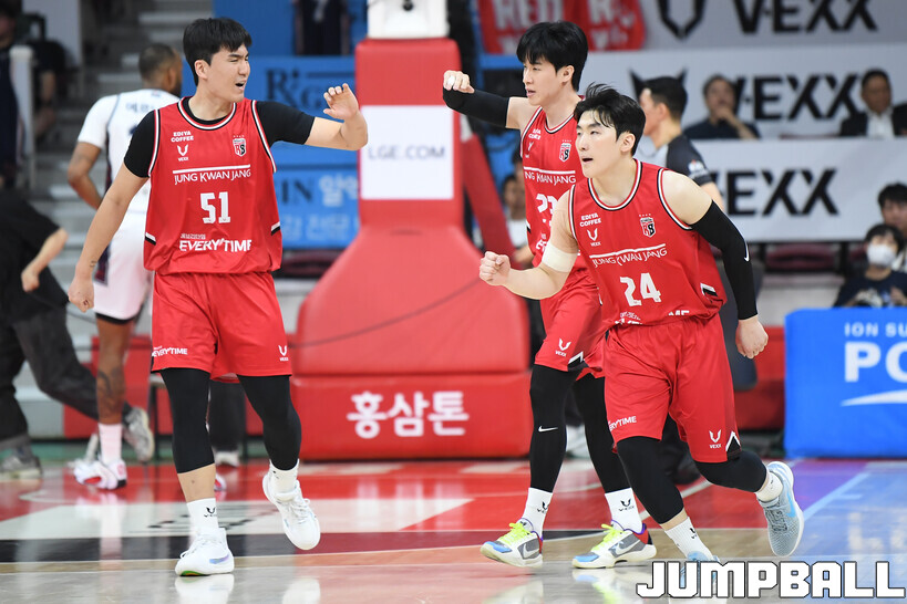 정관장이 2차전 반격에 성공하며 시리즈를 원점으로 돌렸다. 조니 오브라이언트(22점 11리바운드 3어시스트 2블록슛), 한승희(13점 4리바운드 3어시스트 2스틸), 변준형(12점 5리바운드 5어시스트 2스틸)이 고르게 활약했다.