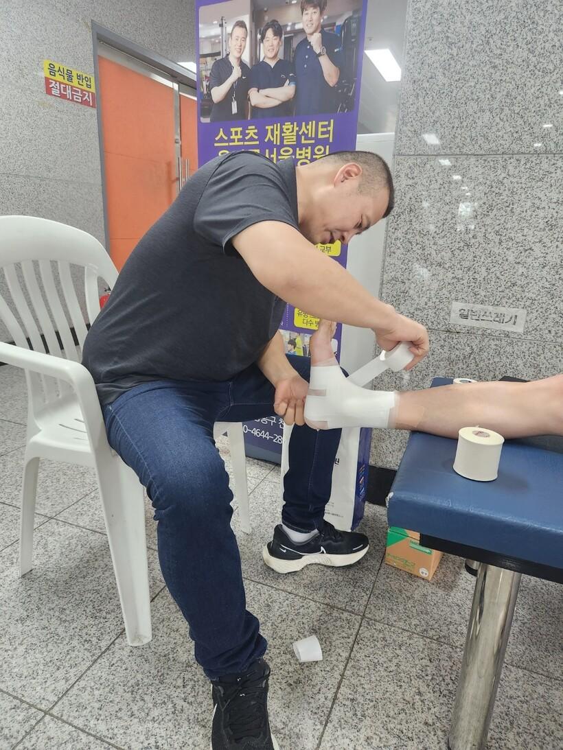 | ▲ 발목 테이핑 서비스 (해남군 제공) |