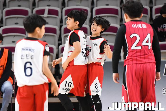 [점프볼=창원/박상혁 기자] 6일 창원실내체육관에서 열린 2020-2021 KBL 유소년 주말리그 C권역 경기, U10 현대모비스 선수들이 환호하고 있다.