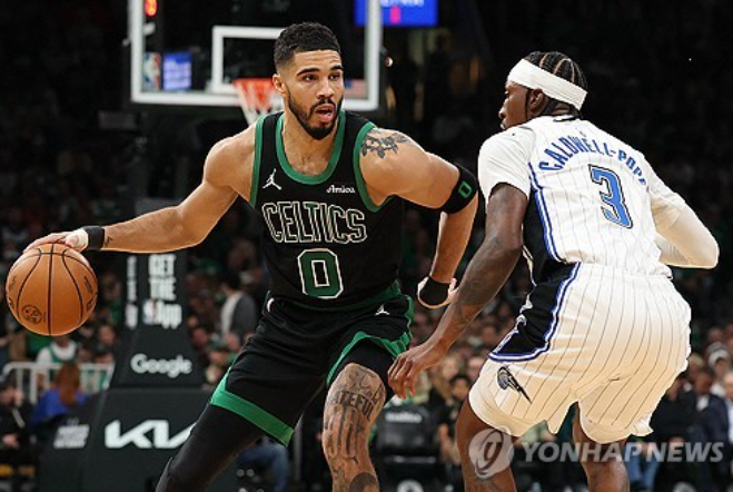 테이텀이 빠진 자리, 39경기에서 평균 29.8점을 몰아치고 있는 그의 파트너 제일런 브라운(보스턴)이 빠졌다는 점도 흥미롭다. MVP급 활약에도 불구하고 순위권에서 이탈했다.