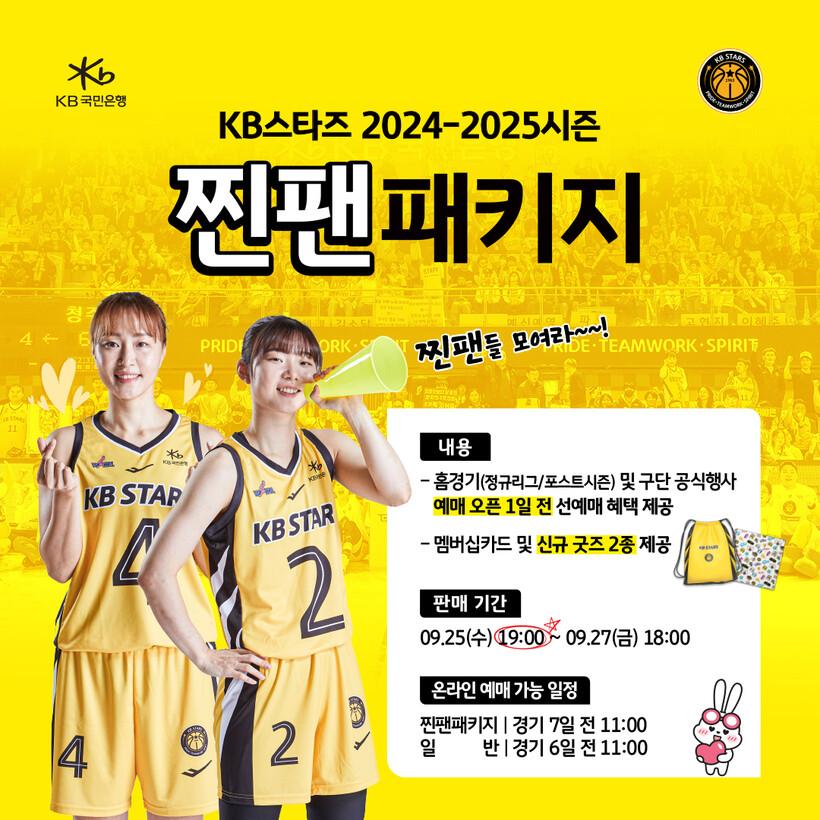 청주 KB스타즈는 23일 보도자료를 통해 “오는 25일(수)부터 27일(금)까지 2024-2025시즌 「찐팬패키지」 멤버십 회원을 모집한다”고 밝혔다.