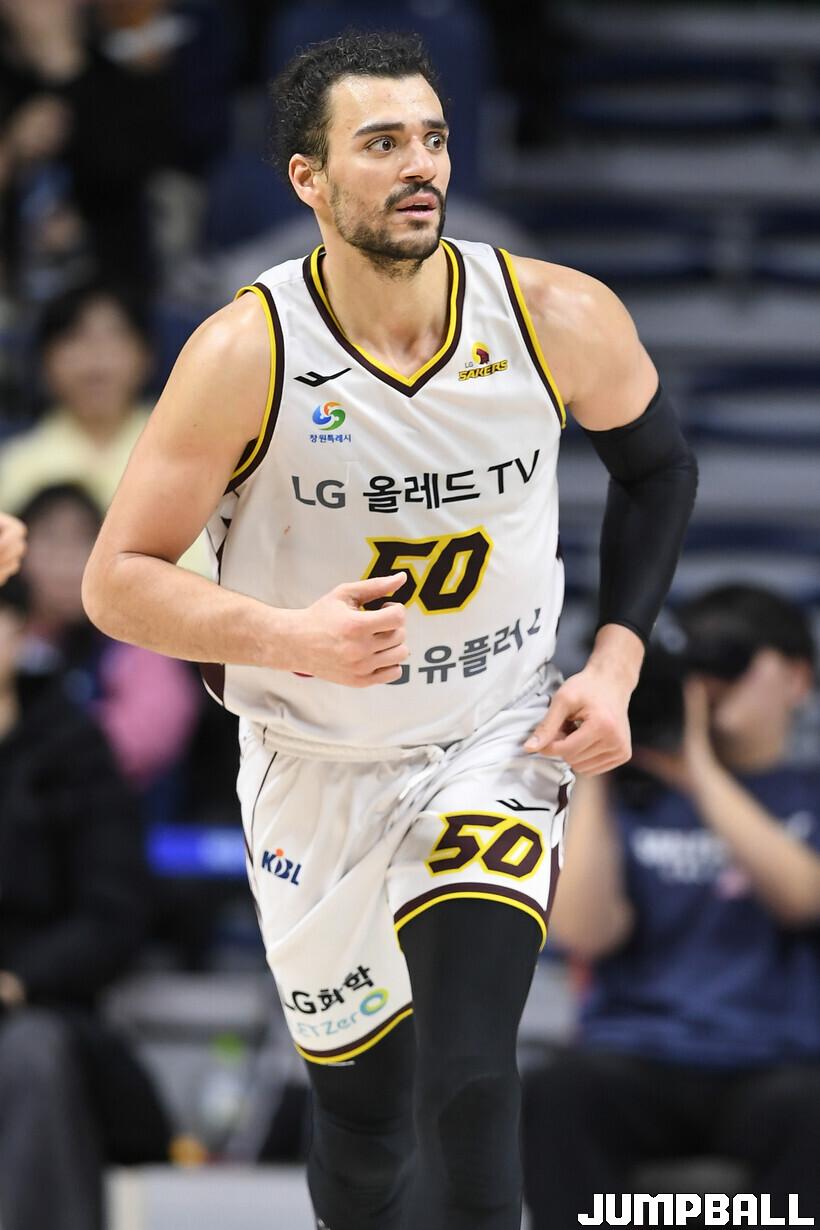 아셈 마레이는 8일 부산사직체육관에서 열린 2024~2025 KCC 프로농구 부산 KCC와 원정 경기에서 17점 14리바운드 8어시스트 3스틸을 기록하며 창원 LG가 83-78로 승리하는데 앞장섰다.