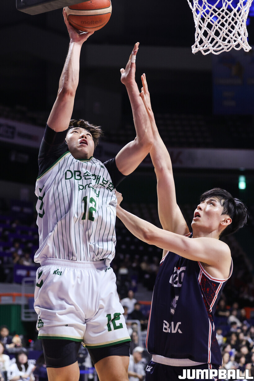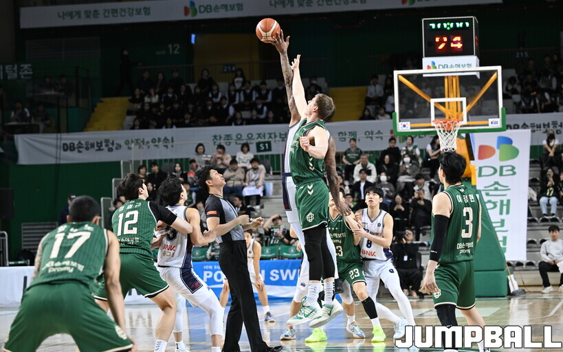 올 시즌 DB-KCC 리바운드 맞대결(앞쪽이 DB)