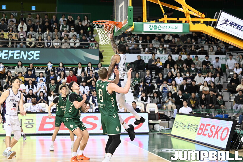KCC 입장에서는 에이스 이선 알바노보다 엘런슨의 화력이 더 위협적일 수밖에 없었다. 넓은 수비 범위를 강요하는 움직임이 KCC 수비를 흔들었기 때문이다.
