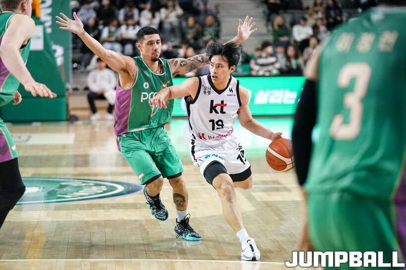 8일 원주 DB 아레나에서 열린 원주 DB와 수원 KT의 맞대결에서 안타까운 부상이 나왔다. 조엘 카굴랑안(KT)이 왼쪽 무릎을 잡고 쓰러졌다.