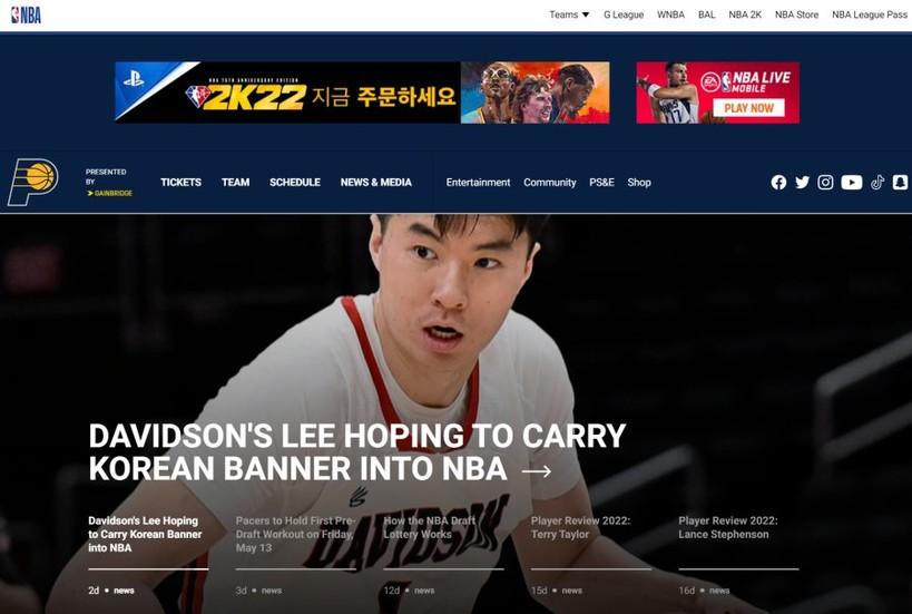 인디애나 페이서스는 한국 시간으로 16일 홈페이지에 이현중을 메인 인물로 장식하며 소개했다.