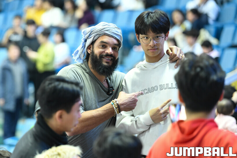 [점프볼=잠실/유용우 기자] 17일 잠실실내체육관에서 열린 2025-2026 LG전자 프로농구 서울 삼성과 서울 SK의 경기, 한국을 찾은 전 NBA 시카고 불스 선수인 조아킴 노아가 삼성과 SK 경기를 관전했다.