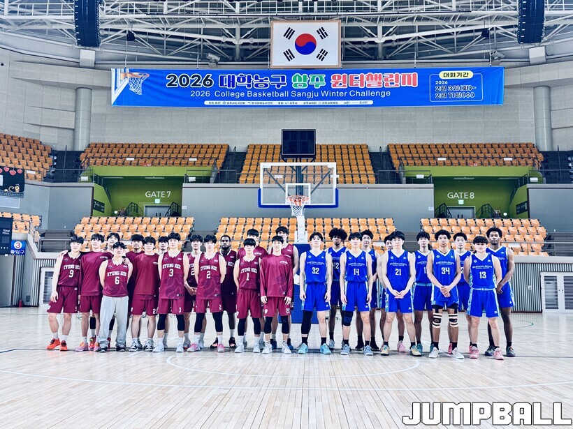 경상북도 상주시에서 2026 대학농구 상주 윈터챌린지가 펼쳐지고 있다. 지난해 스토브리그로 열렸는데 올해 윈터챌린지로 대회명을 바꿨다.