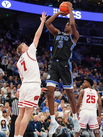 브리검영대(BYU)는 25일(한국시간) 프로보 유타에서 열린 NCAA 2025-2026시즌 빅12 컨퍼런스 정규리그 유타대와 맞대결에서 91-78로 승리했다. 이로써 브리검영대는 시즌 전적 17승 2패를 기록했다.