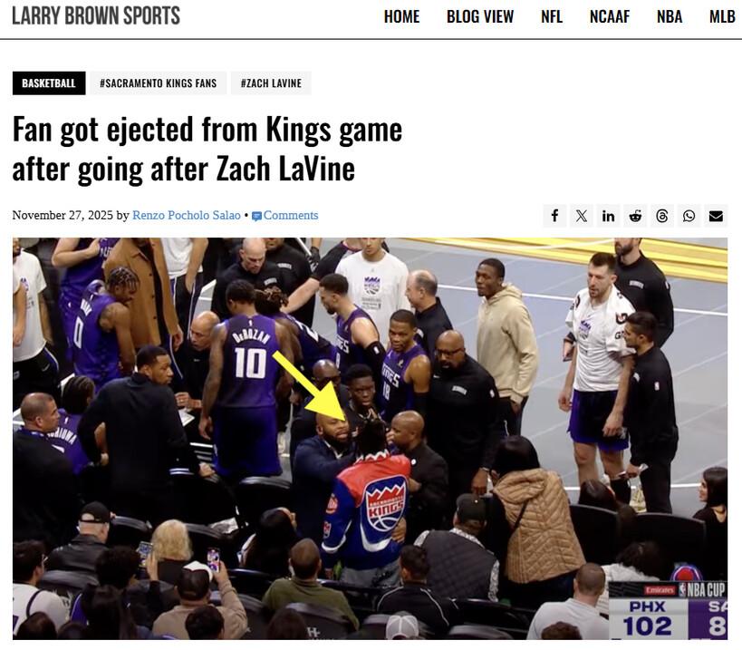 논란의 상황은 27일 골든 1 센터에서 벌어졌다. 새크라멘토 킹스는 피닉스 선즈와의 홈경기에서 100-112로 패, 5승 14패에 머물렀다. 1쿼터를 16-41로 시작했던 새크라멘토는 3쿼터 한때 격차를 8점까지 좁히는 등 매서운 추격전을 펼쳤지만, 끝내 전세를 뒤집진 못했다.