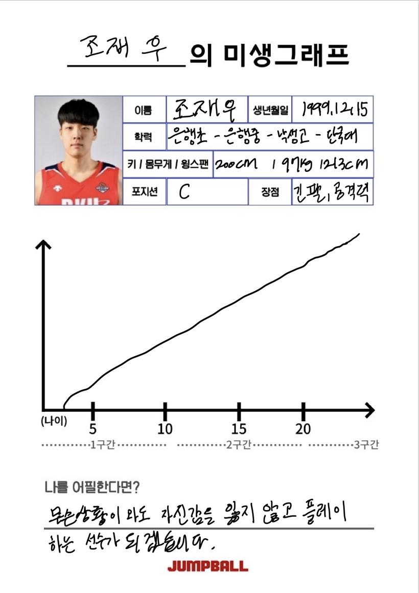 “가서 기죽지 않고 신인다운 면모로 열심히 할 것 같아요. 제 능력을 증명할 수 있는 플레이로 팬들 혹은 구단 관계자분들께 보답하고 싶어요. 제 장점도 많이 보여드리고 싶고, 부족한 부분도 잘하는 형들 옆에서 보고 많이 배우면 많이 늘 거라고 생각해요. 또한 허슬 플레이나 리바운드 하나로 팀에 활력을 불어넣는 선수가 되고 싶어요”라고 포부를 밝힌 조재우였다.