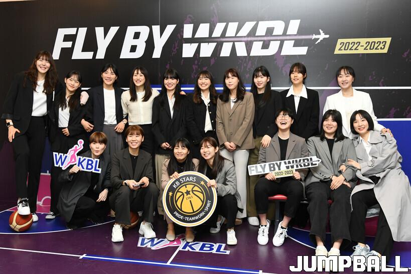 6일 여의도 63컨벤션센터 그랜드볼룸에서 열린 신한은행 SOL 2022-2023 여자프로농구 정규리그 시상식, KB스타즈 선수단이 포토월에서 사진 촬영을 하고 있다.
