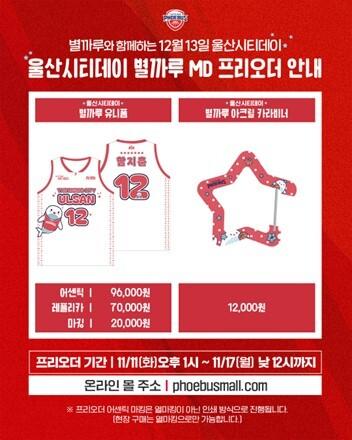 이번 유니폼은 오는 12월 13일 서울 삼성과의 홈경기에서 착용할 예정이다. ‘울산시티데이에디션 별까루 유니폼’은 사전 예약(Pre-order) 방식으로 판매되며, 11일 오후 1시부터 17일 낮 12시까지 현대모비스피버스 온라인 몰에서 구매할 수 있다. 세부적인 내용은 구단 소셜미디어 채널을 통해 확인할 수 있다.