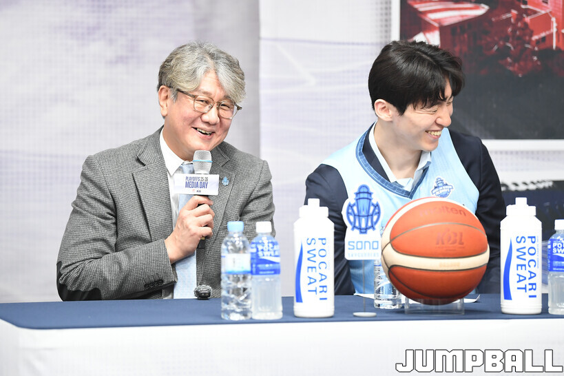 KBL은 10일 KBL 센터 5층 교육장에서 2025-2026 LG전자 프로농구 플레이오프 미디어데이를 개최했다. 1, 2부로 순서가 나눠서 진행되었고 창단 첫 봄 농구라는 값진 성과를 만든 고양 소노의 일원들 역시 참석했다.