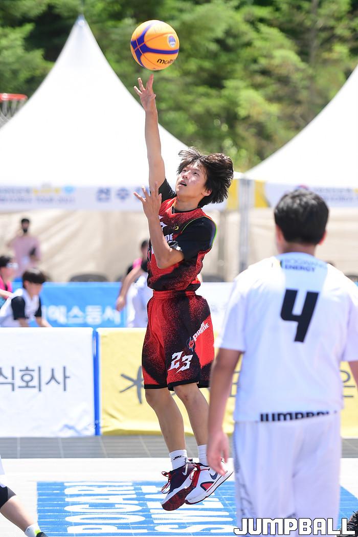 [점프볼=양구/박상혁 기자] 19일과 20일 양구청춘체육관 앞 특설코트에서 KB국민은행 LIIV m 3X3 코리아투어 IN 양구 대회가 펼쳐진다. 중등부 프라임타임 양희준이 슛을 시도하고 있다.