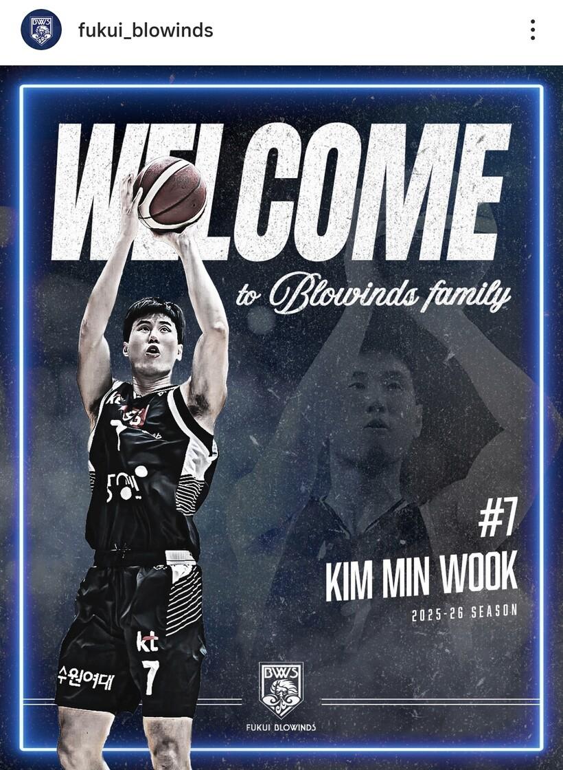 일본 B리그 B2(2부 리그) 후쿠이 블로윈즈는 14일 공식 소셜미디어 계정을 통해 김민욱 영입을 발표했다.